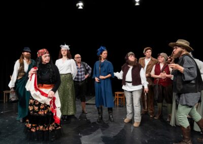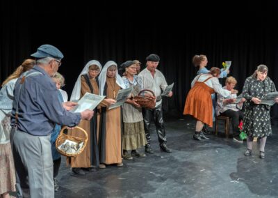 „Die Spur der Steine in Schwedt – (k)ein Märchen!“ Weit über 100 Schwedter haben daran durch Fragebögen, Gespräche und Interviews mitgewirkt. Entstanden ist eine märchenhafte Geschichte über die letzten 50 Jahre Zeitgeschichte Schwedts. Sie wird ergänzt durch authentische Meinungen der Einwohner zum Bild der Stadt, ihren Problemen und möglichen Veränderungen. Unter der Regie von Ulrike Völger gestalten die Darsteller eine wirkungsvolle Aufführung, die mit der Musik von Andreas van den Brandt und dem Bühnenbild von Anke Fischer ihre einfühlsame Umrahmung erfährt. Das Projekt, gefördert im Fonds Heimspiel der Kulturstiftung des Bundes, begannen die ubs im September 2012. Es wird begleitet durch die Partnervereine Die Brücke, dem Kunstverein Schwedts, dem Seniorenverein der Stadtverwaltung, dem Verein Junge Wirtschaft Schwedts und dem Gauß-Gymnasium. Nach einer vorbereitenden Phase mit Gesprächen und Fragebögen startete die Journalistin Birgit Bruck im November ihre Interviewreihe mit 16 Damen und Herren Schwedts, die sie im Februar als Material für das Stück (Text: Heike Schmidt) den ubs zur Verfügung stellte. Die Besonderheit dieser großen Produktion besteht in der chorischen Gestaltung einiger Figuren, zum Beispiel die Stadt Schwedt. Sie wird von fünf Mädchen gespielt, der Fluss Oder von fünf Damen. Fast alle SpielerInnen werden in den dokumentarischen Zwischentexten eingesetzt. So entsteht das Märchen einer Stadt, das sich eng an die Wirklichkeit anlehnt. Die Spur der Steine in Schwedt – (k)ein Märchen!“ Ein Stück nach Interviews von Birgit Bruck mit Schwedterinnen und Schwedtern von Heike Schmidt, gefördert im Fonds Heimspiel der Kulturstiftung des Bundes.