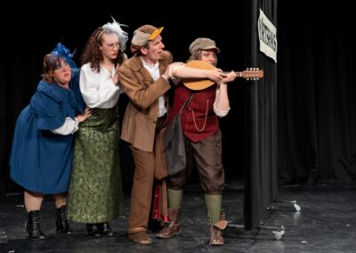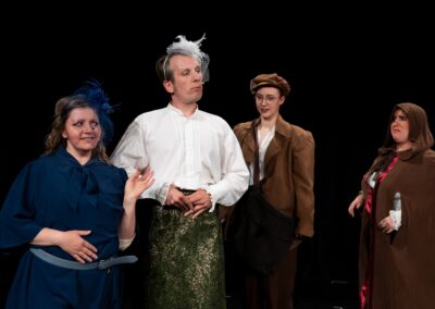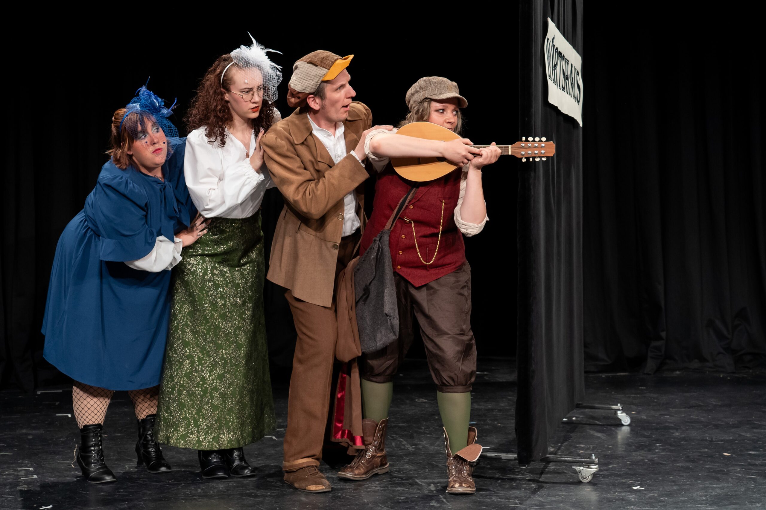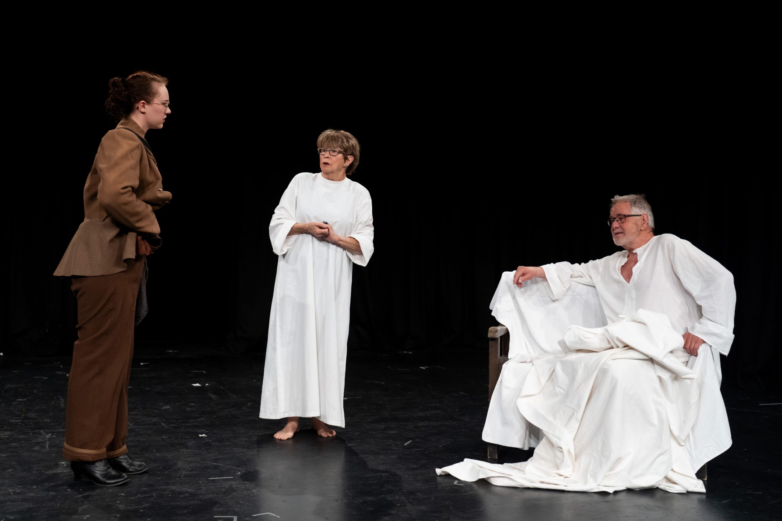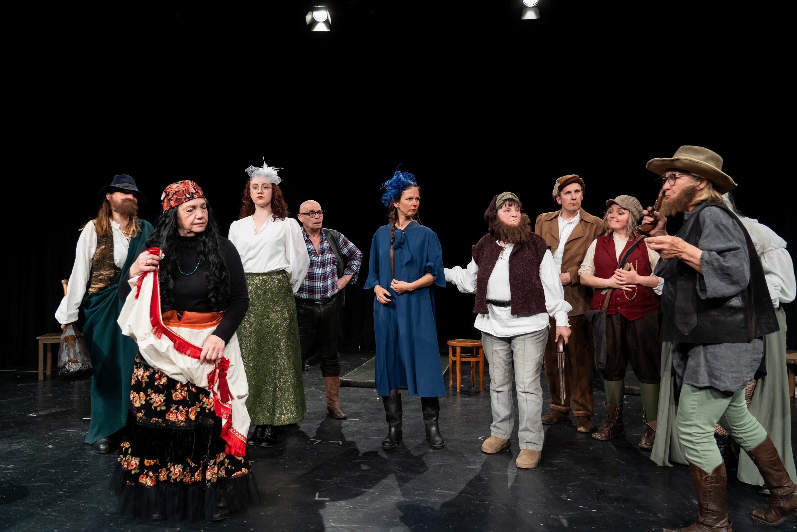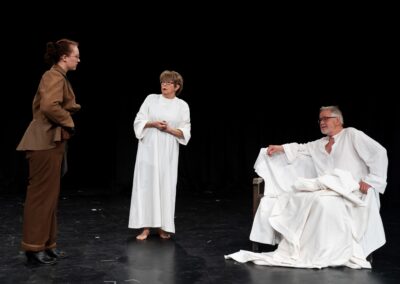 Man könnte sich an Shakespeares Dramen wagen, die zwar eine große Rollenanzahl bieten, aber vorrangig für Männer geschrieben sind. Dazu kam, dass keiner nur eine „Ein-Satz-Rolle“ spielen wollte und so entstand die Idee, jedem einen Vorsprechmonolog zu geben, diesen szenisch einzubinden und alle Darsteller gleichsam zu fordern. Herausgekommen ist „Hamlet im Chaos – wir melden uns“: Auf der Probe zu Shakespeares „Hamlet“ geraten sich Ophelia und Gertrud gehörig in die Haare, da Waffen genug vorhanden sind, gibt es Schwerverletzte – eine Woche vor der ausverkauften Premiere! Da heißt es Umbesetzen und das ziemlich schnell. Dreizehn Frauen und fünf Männer der „generation ubs“ treten an zu einem amüsanten Wettstreit um die begehrten Rollen und erzählen Anekdoten hinter der Bühne.